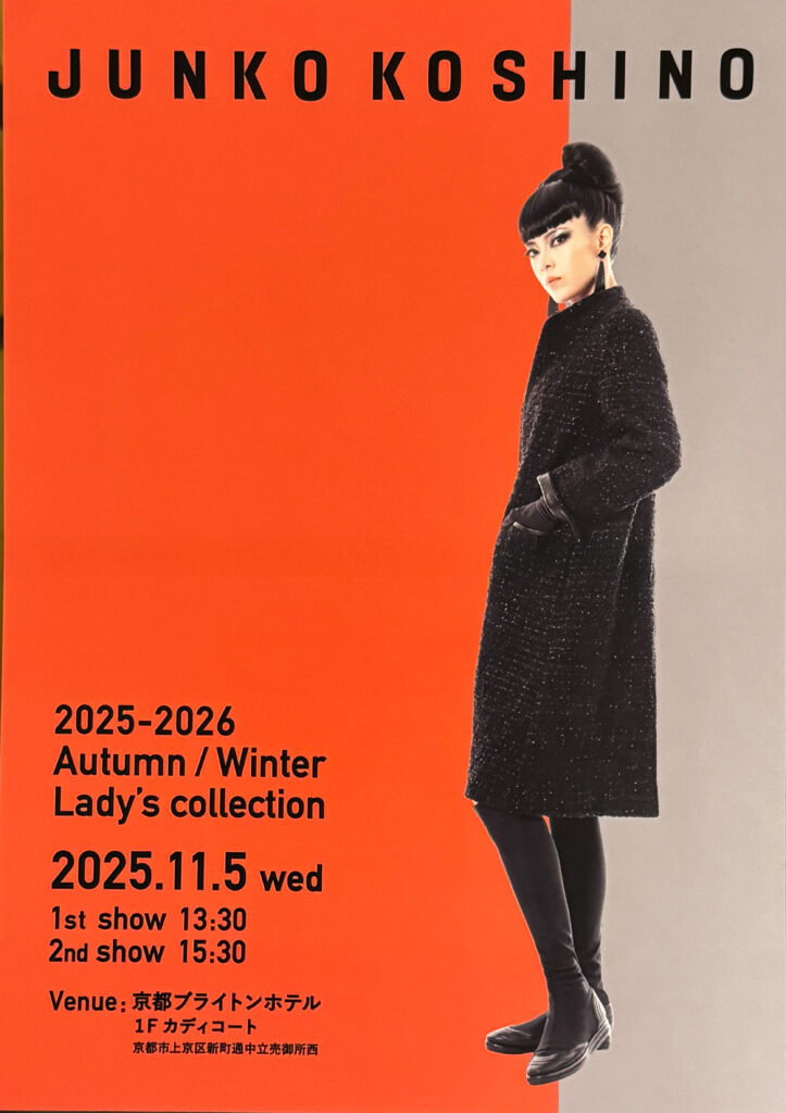 [京都]JUNKO KOSHINO2025-2026 秋冬レディースコレクション2025年11月5日(水)1回目:13:00〜2回目:15:30〜特別ゲスト:ヴィオリニスト・大迫淳英[会場] 京都ブライトンホテル 1F カディコート(京都市 上京区 新町通中立売御所西) 入場料:[出演] 音旅演出家®・ヴァイオリニスト:大迫淳英 チェロ:堀内 美貴子 ピアノ:傳 かおり[プログラム] 未定