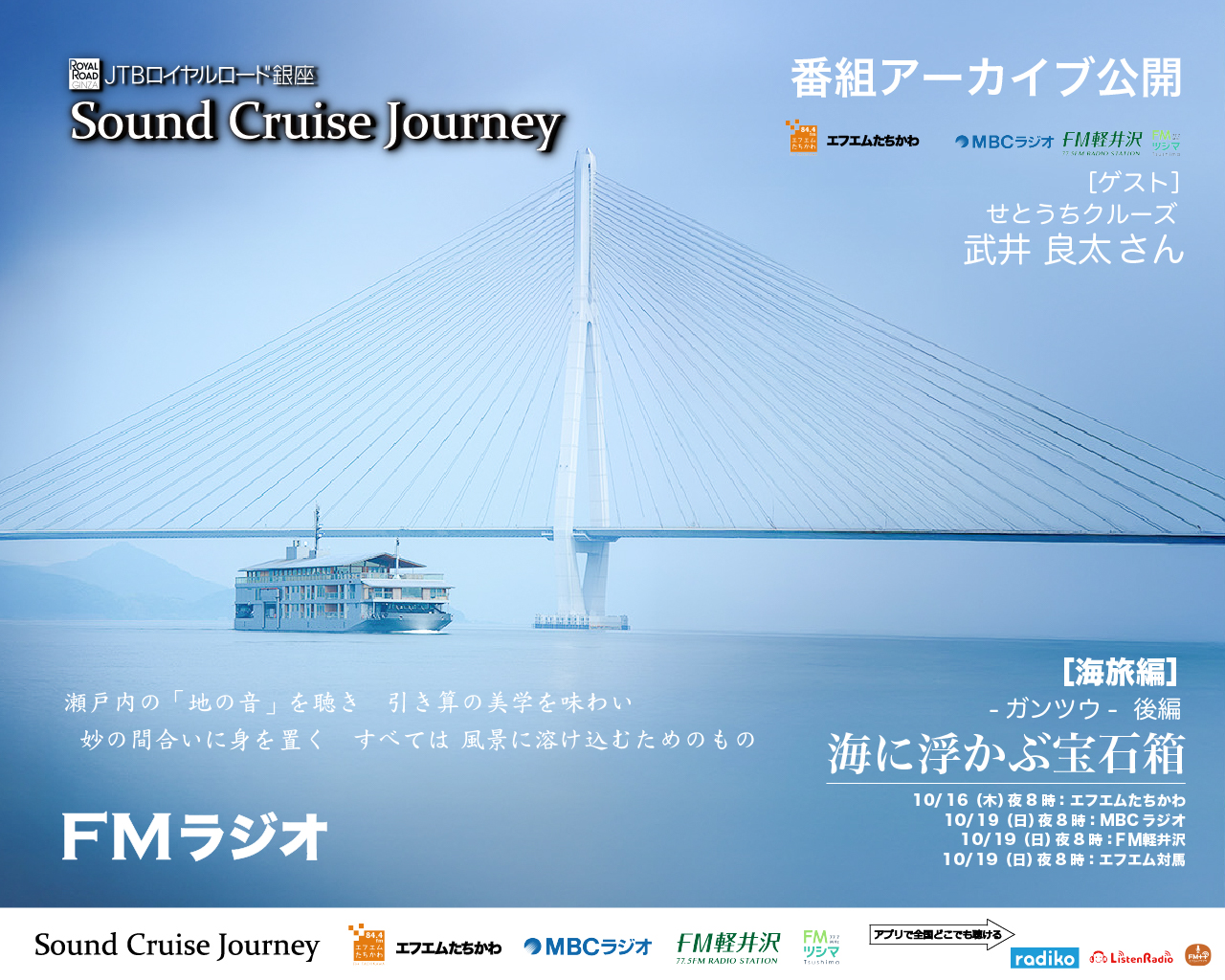 第211回放送[東京]FMたちかわ:2025年10月2日20:00〜20:30[鹿児島]MBCラジオ:2025年10月5日20:00〜20:30[長野]FM軽井沢:2025年10月5日20:00〜20:30[長崎]エフエム対馬:2025年10月5日20:00〜20:30