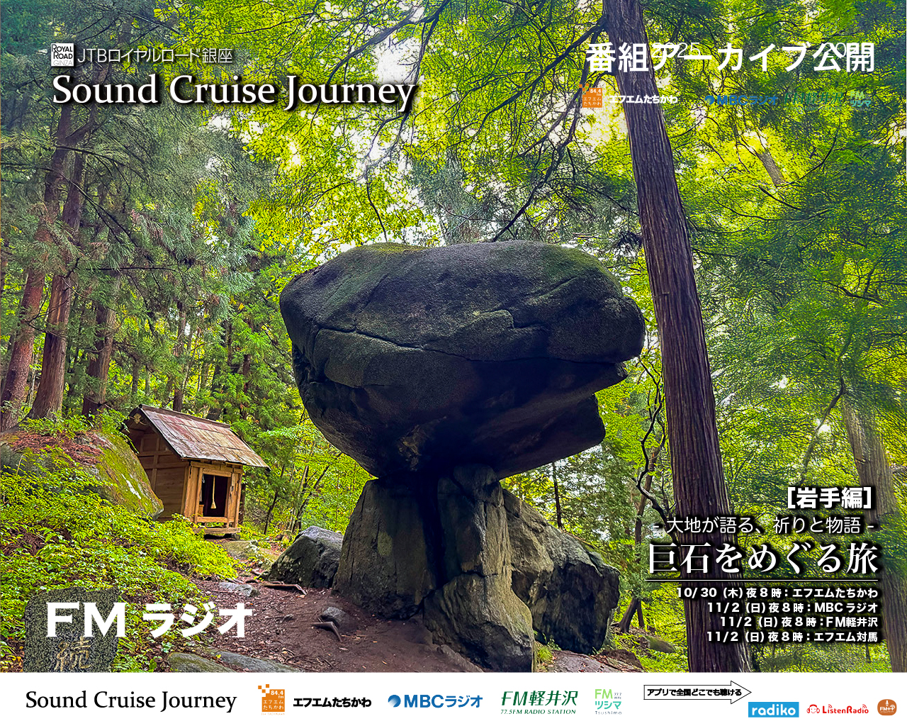 第213回放送[東京]FMたちかわ:2025年10月30日20:00〜20:30[鹿児島]MBCラジオ:2025年11月2日20:00〜20:30[長野]FM軽井沢:2025年11月2日20:00〜20:30[長崎]エフエム対馬:2025年11月2日20:00〜20:30