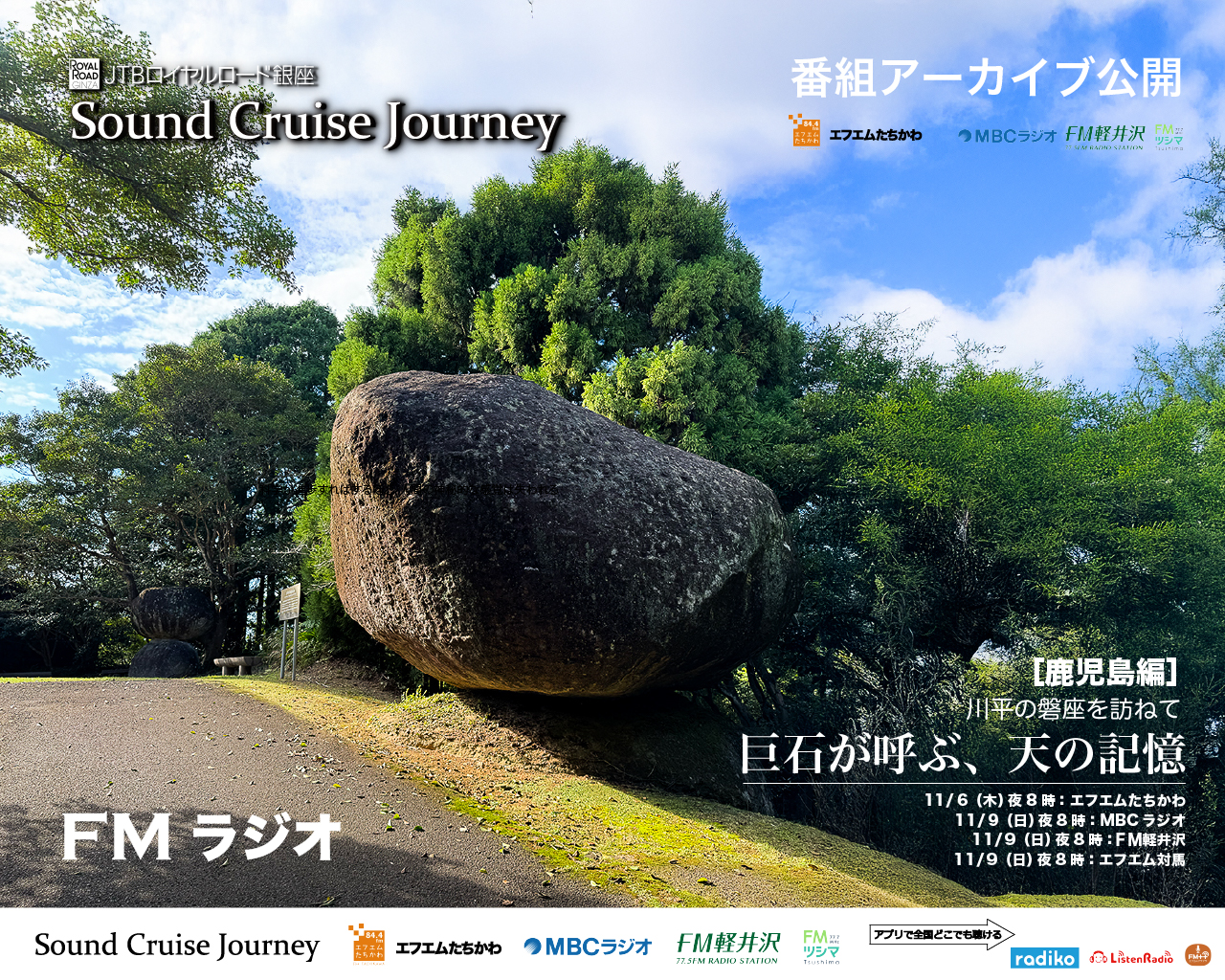 第214回放送[東京]FMたちかわ:2025年11月6日20:00〜20:30[鹿児島]MBCラジオ:2025年11月9日20:00〜20:30[長野]FM軽井沢:2025年11月9日20:00〜20:30[長崎]エフエム対馬:2025年11月9日20:00〜20:30