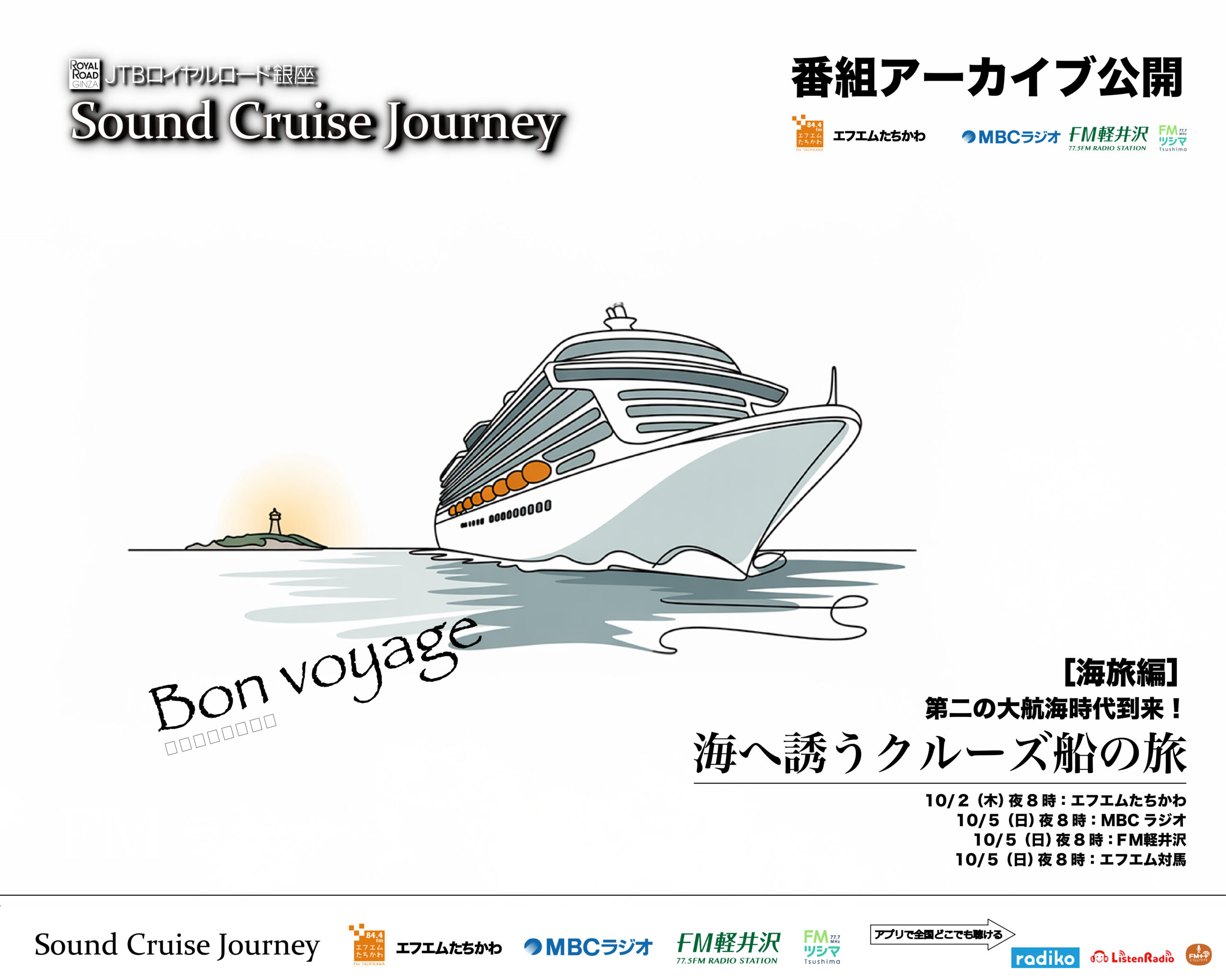 第209回放送[東京]FMたちかわ:2025年10月2日20:00〜20:30[鹿児島]MBCラジオ:2025年10月5日20:00〜20:30[長野]FM軽井沢:2025年10月5日20:00〜20:30[長崎]エフエム対馬:2025年10月5日20:00〜20:30