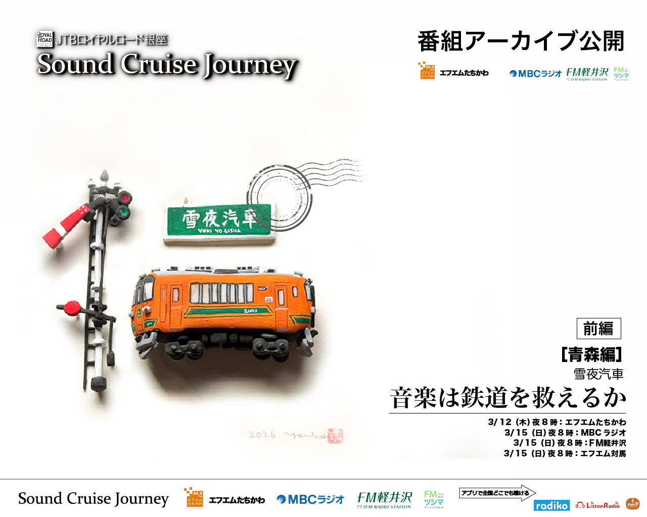 第232回放送[東京]FMたちかわ:2026年3月12日20:00〜20:30[鹿児島]MBCラジオ:2026年3月15日20:00〜20:30[長野]FM軽井沢:2026年3月15日20:00〜20:30[長崎]エフエム対馬:2026年3月15日20:00〜20:30