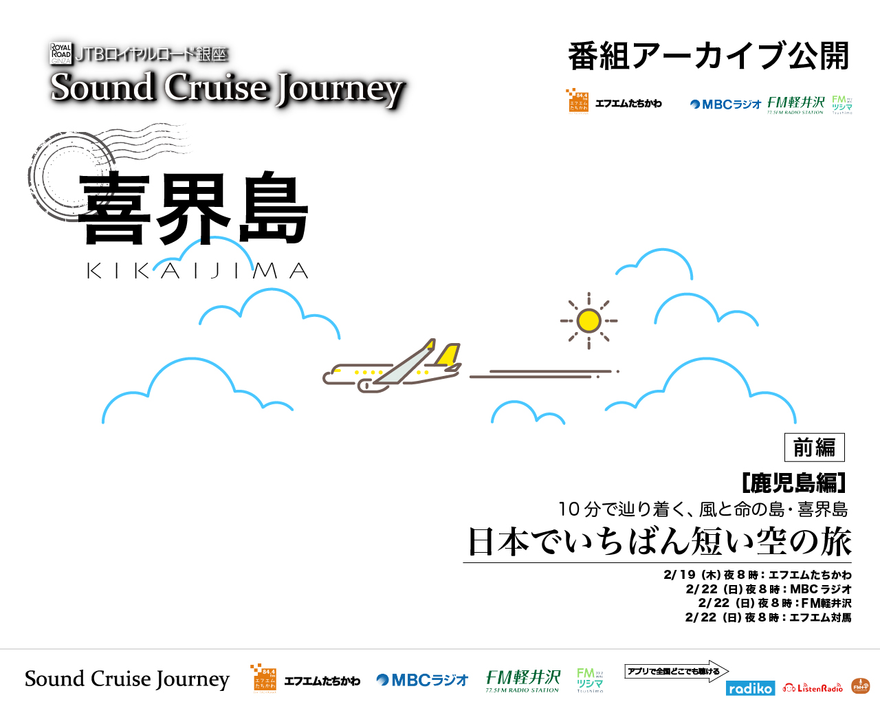 第229回放送[東京]FMたちかわ:2026年2月19日20:00〜20:30[鹿児島]MBCラジオ:2026年2月22日19:30〜20:00[長野]FM軽井沢:2026年2月22日20:00〜20:30[長崎]エフエム対馬:2026年2月22日20:00〜20:30